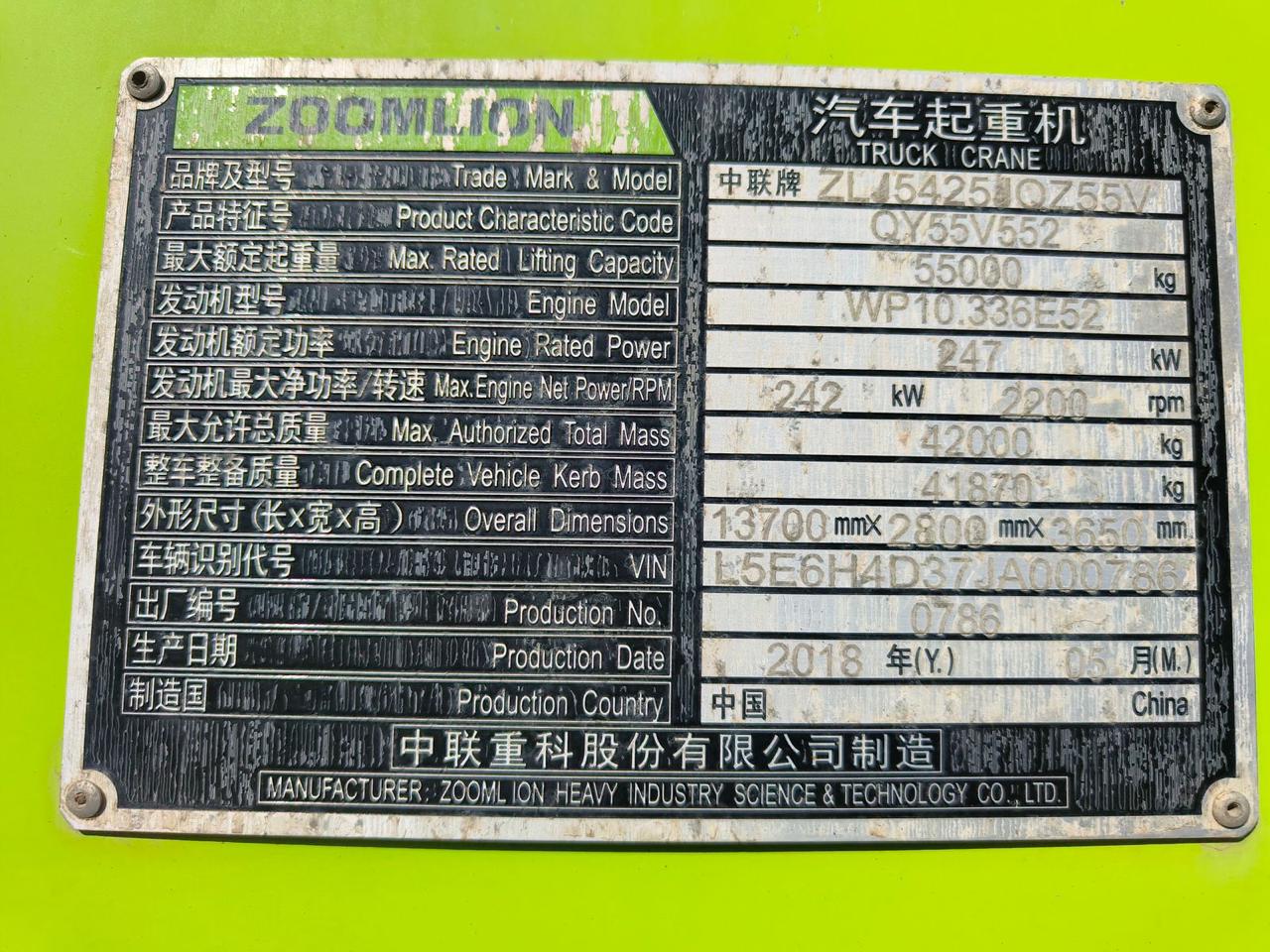 Год выпуска: 2021. Производитель: Zoomlion Heavy Industry & Science Technology Co., Ltd.