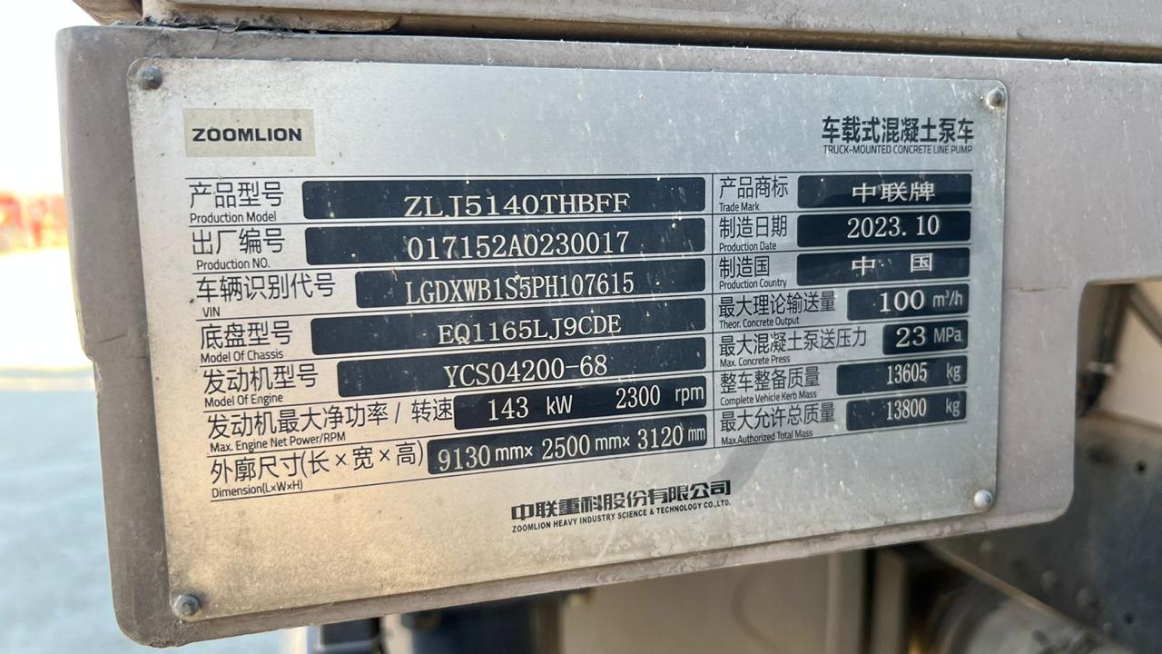 Zoomlion ZLJ5140THBFF — мощный стационарный насос 2023 года с давлением 23 МПа. Привозим под заказ.